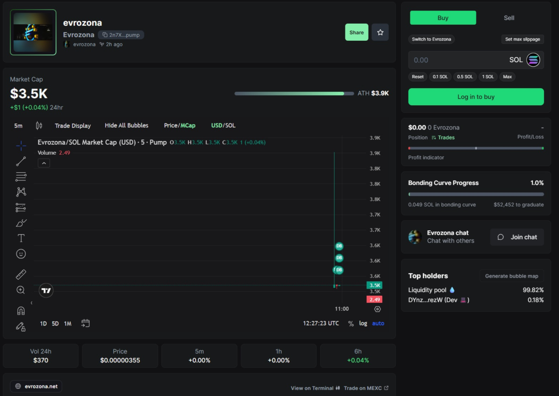 Evrozona crypto token pump.fun